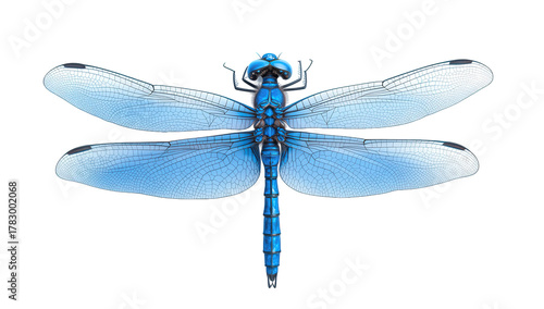 A beautiful blue dragonfly isolated on transparent background, showcasing its intricate wing patterns and delicate structure in a captivating and detailed closeup view