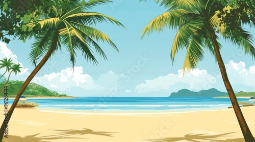 A beautiful blue ocean with palm trees in the background