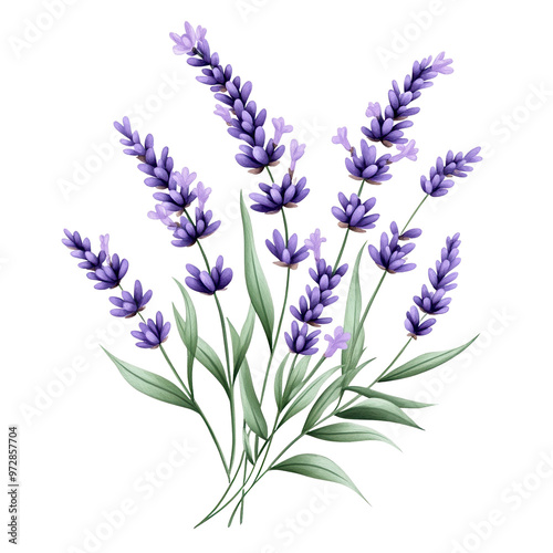 A beautiful bouquet of lavender flowers, showcasing vibrant purple blooms and lush green leaves, perfect for enhancing any design.