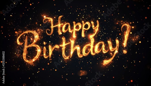 A beautiful inscription "Happy Birthday!" made of glowing fire, on a black background The letters have an elegant script font, and they glimmer like sparkling embers Generative AI