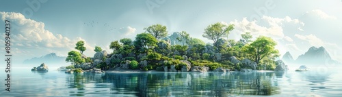 A beautiful island with a lot of trees and a body of water