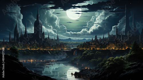 A Beautiful Medieval City Cityscape Background