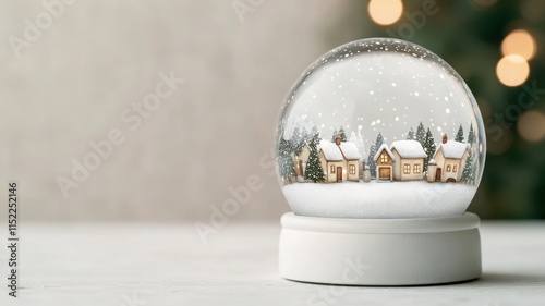 A beautiful snow globe showcasing a winter village scene with houses, trees, and falling snow, perfect for holiday decor.