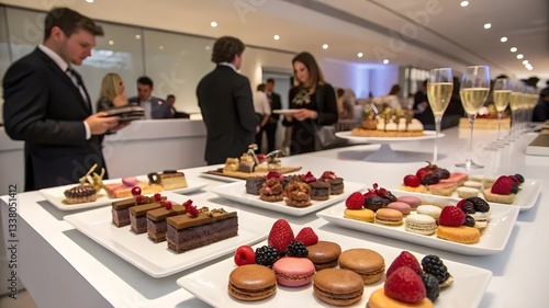 A beautifully arranged table featuring various dessert plates and sparkling champagne glasses, perfect for a celebration