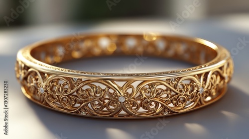 A beautifully crafted gold bangle with intricate designs, showcasing elegance and sophistication in jewelry.