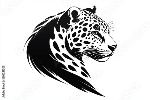 A black and white drawing of a leopard with a white background. Generative Ai.