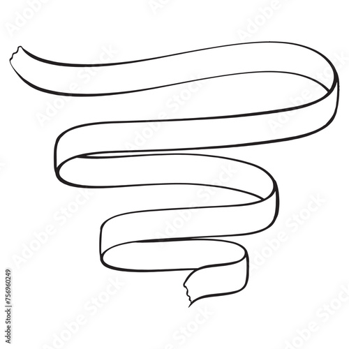 A black and white ribbon sketch on a white background