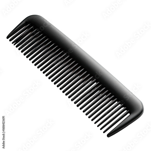 A black plastic comb, angled, against a plain black background
