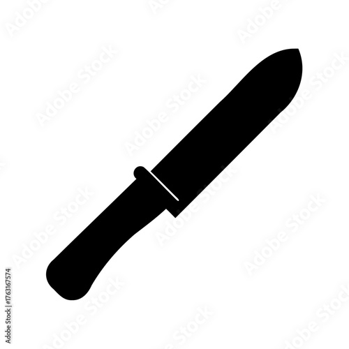 A black silhouette of a knife or dagger isolated on white background
