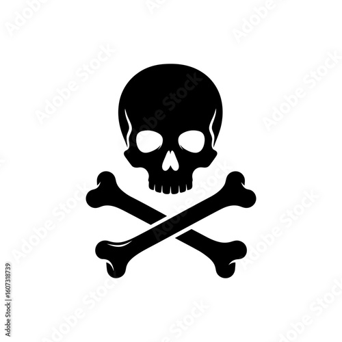 A black skull and crossbones is isolated on white background, a symbol of danger