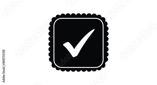A black square frame with a white checkmark inside presenting a confirmation symbol silhouette
