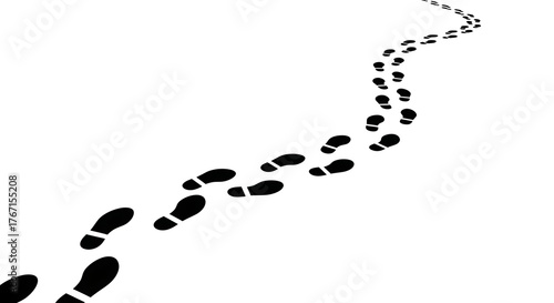 A black trail of footprints meanders across a white background, suggesting a path or journey, heading toward the top-right