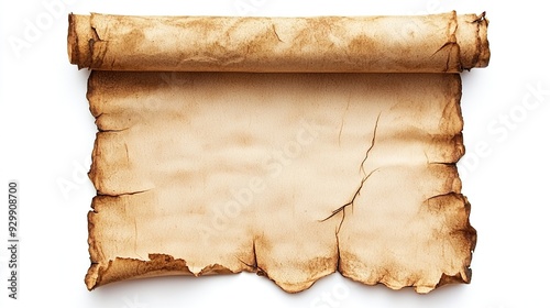 A blank ancient paper scroll with copy space for text isolated on white background. Generative Ai