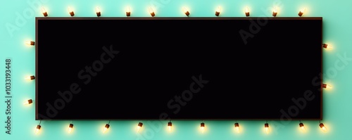 A blank marquee sign framed by glowing light bulbs, set against a turquoise background, ready for messages or announcements.