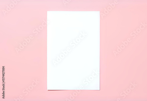 A blank single-page A4 flyer mockup centered on pastel pink background, top-down angle with subtle shadow, perfect for event, promo, or minimal branding.