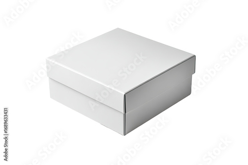 A blank, square, white cardboard box. It has a slightly overlapping lid