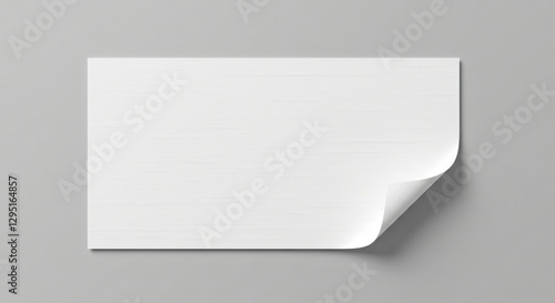 A blank white rectangular paper with a curled bottom-right corner is attached to a smooth gray wall. The minimalistic design highlights texture, depth, and simplicity in a modern setting.