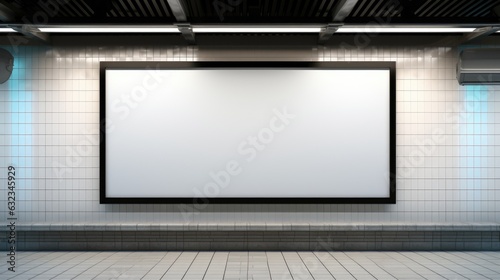 A blank white screen in a subway station. Digital image. Billboard mockup.