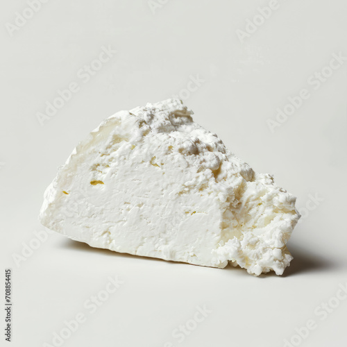 A block of crumbled white feta cheese isolated on a white background, AI generated
