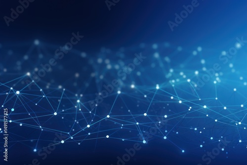 A blue and white abstract digital network with glowing points and lines