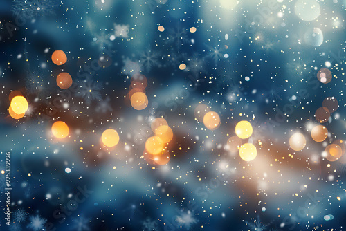 A blue sky with snowflakes falling and a light blue background. generative ai image.