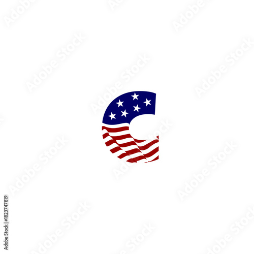 A bold American flag forming a unique letter monogram logo. Ideal for patriotic brands, US events, government-related projects, sports teams, and strong national identity designs.