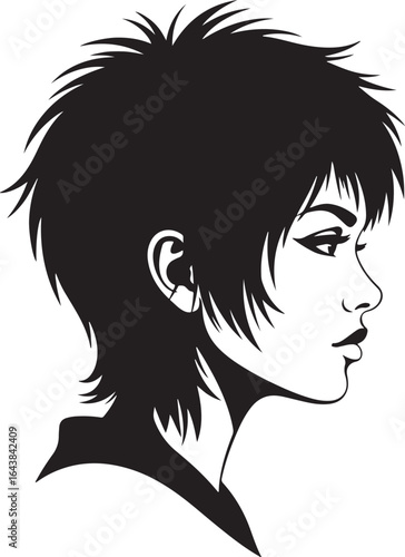 A bold vector illustration of a person with a layered shaggy haircut and a dramatic side profile