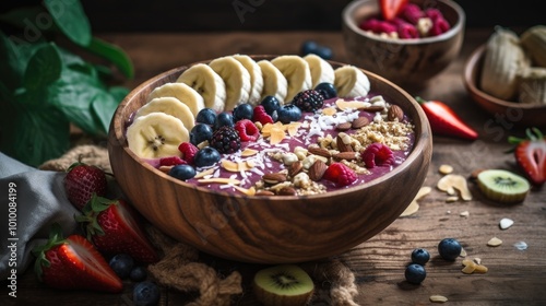 A Bowl of Acai Bowl Topped with Fruit and Nuts