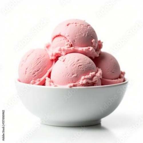 A bowl of creamy pink strawberry ice cream scoops, enticingly arranged for a delightful treat.