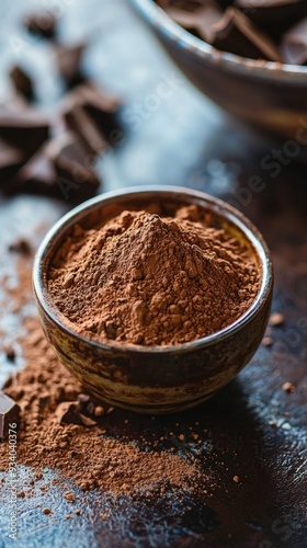 a bowl of fresh cocoa powder on a table