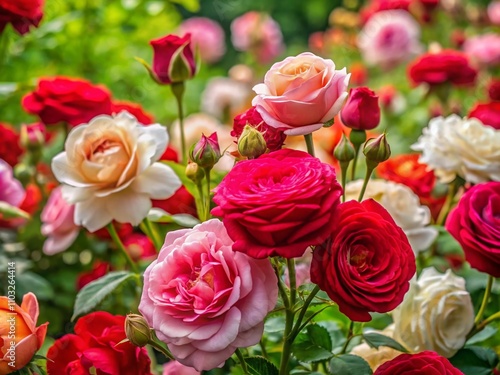 A Breathtaking Garden of Roses in Shades of Red, Pink, and White, Capturing Nature's Beauty in Food Photography Style