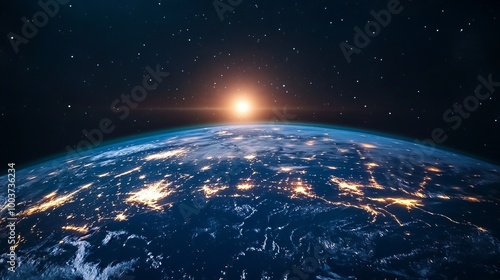 A breathtaking view of planet Earth from space reveals the vibrant glow of cities and regions illuminated by lights during the night.