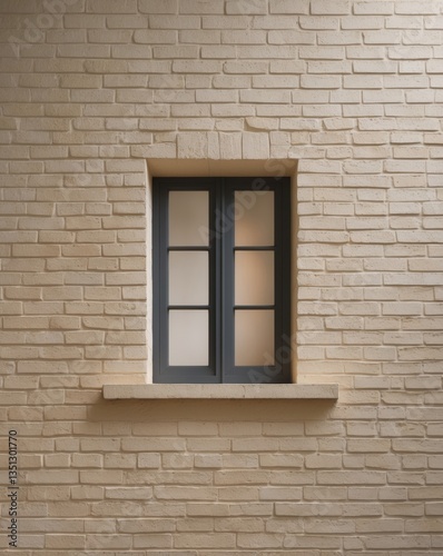 A brick wall with a small window in the middle