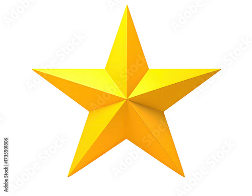 A bright golden, five-pointed star with highlights and shadows against black
