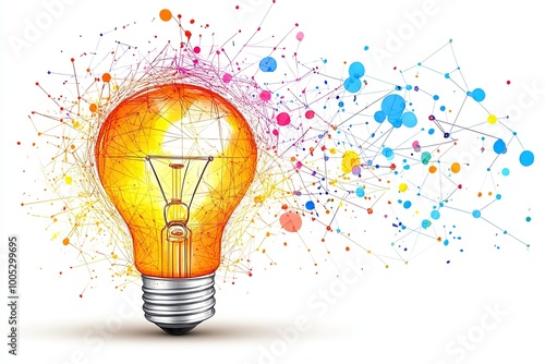 A bright light bulb with colorful abstract patterns symbolizing creativity and innovation in a digital era. Generative AI