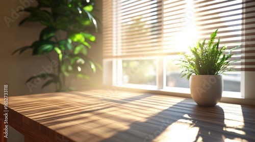 A bright morning light shines on a green plant