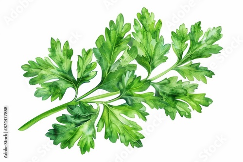 A bright watercolor depiction of parsley, with its curly leaves vividly detailed, isolate on white background with copy space