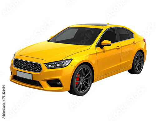 A bright yellow sedan gleams against a black backdrop, showcasing modern design