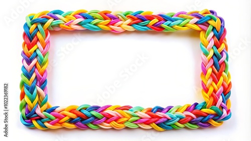 A brightly colored braided frame on a plain white backdrop