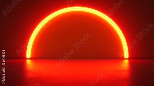 A brightly illuminated neon semi circle against a red background