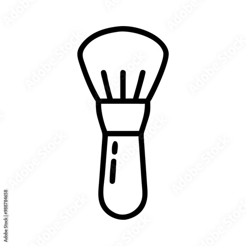 A brush is shown in a black and white drawing. The brush is the main focus of the image and is drawn in a stylized way. The brush is long and thin, with a handle that is also long and thin