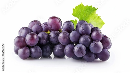 a bunch of grapes, fresh fruit, plump and purple, isolated on white background