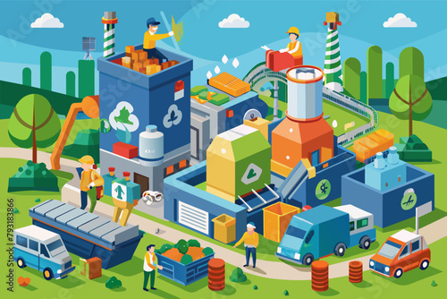 A bustling recycling plant sorting materials for a sustainable future, showcasing waste management solutions.
