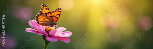 A Butterfly Perches Delicately On A Pink Flower Amidst A Vibrant Bokeh Light Effect With Shallow Depth Of Field. 00002