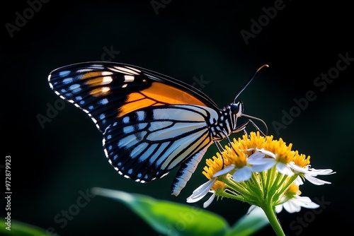 A butterfly resting on a flower, its wings slowly opening and closing as it basks in the sunlight of a meadow