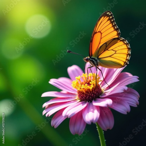 A butterfly sipping nectar from a colorful flower with delicate petals and soft center, bloom, petal, nature