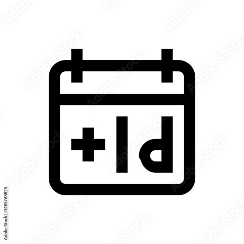 A calendar icon with a plus sign, a vertical line, and a lowercase d inside, all in a bold black outline