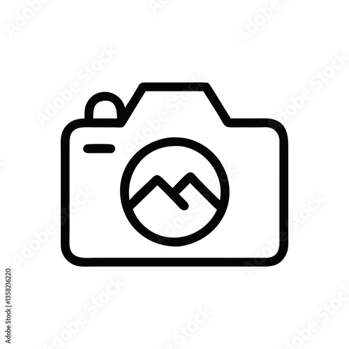 A camera icon featuring mountains within the lens.