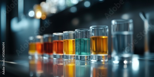 A captivating lineup of glasses filled with vibrant liquids, displaying a colorful range of drinks that evoke a sense of festive gathering and enjoyment.