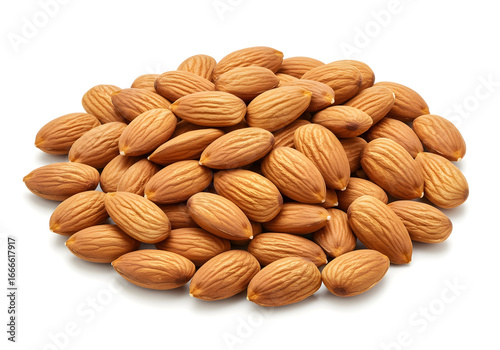 A captivating pile of almonds in their natural state, displayed against a clean white background creating a wholesome and nutritious visual appeal.